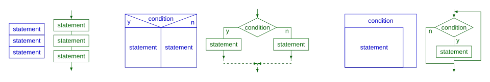 - Although not part of the structured program theorem, languages generally include a block concept that groups a sequence of code so that it acts much like a single statement. A language includes a way to mark a sequence of statements as a block that, unless it contains flow control, will be executed sequentially, top-to-bottom. For example, a block is enclosed in curly braces