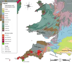- ^ Edmonds, E. A.; McKeown, M. C.; Williams, M. (1975). "Carboniferous Rocks". South-West England. British Geology. Dewey, H. (4th ed.). London: HMSO/British Geological Survey. p. 34. ISBN 0-11-880713-7.