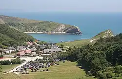 Dorset experienced an increase in holiday-makers after the war.[51] First popularised as a tourist destination by George III's frequent visits to Weymouth, the county's coastline, seaside resorts and its sparsely populated rural areas attract millions of visitors each year.[41][52] With farming declining across the country, tourism has edged ahead as the primary revenue-earning sector.[42][53]