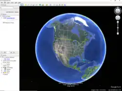 Google Earth is a web and computer program created by Google that renders a 3D representation of Earth based primarily on satellite imagery. The program maps the Earth by superimposing satellite images, aerial photography, and GIS data onto a 3D globe, allowing users to see cities and landscapes from various angles. Users can explore the globe by entering addresses and coordinates, or by using a keyboard or mouse. The program can also be downloaded on a smartphone or tablet, using a touch screen or stylus to navigate. Users may use the program to add their own data using Keyhole Markup Language and upload them through various sources, such as forums or blogs. Google Earth is able to show various kinds of images overlaid on the surface of the Earth and is also a Web Map Service client. In 2019, Google revealed that Google Earth covers more than 97 percent of the world.[8]