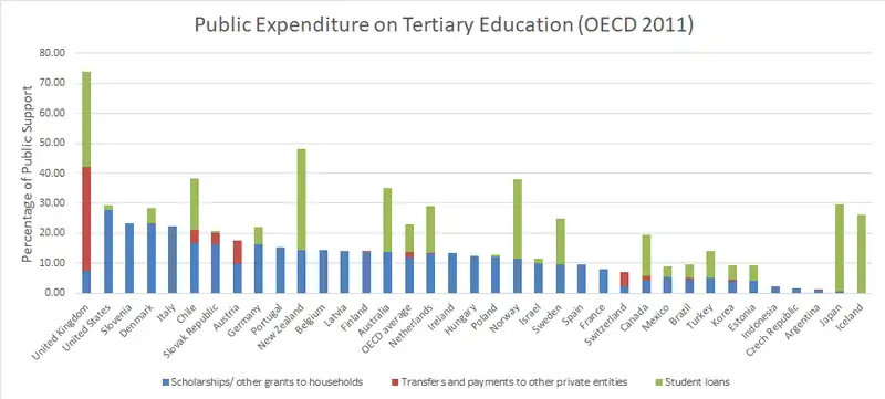 For information on public support for higher education (for domestic students) in the OECD in 2011, see chart below.