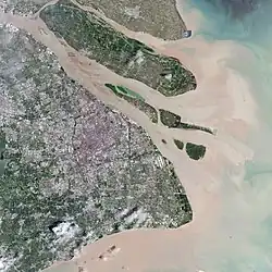 The two Chinese characters in the city's name are 上 (shàng/zaon, "upon") and 海 (hǎi/hé, "sea"), together meaning "On the Sea". The earliest occurrence of this name dates from the 11th-century Song dynasty, when there was already a river confluence and a town with this name in the area. Others contend that the city is referenced in historical records dating back 2150 years, and that its ancient name, "Hu", suggests it was previously a fishing village. In 1280 it was renamed "Shanghai", which translates to "Above the Sea".[16] How the name should be understood has been disputed, but Chinese historians concluded that during the Tang dynasty, the area of modern-day Shanghai was under sea level, so the land appeared to be literally "on the sea".[17]