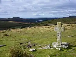 Geologically the region is divided into the largely igneous and metamorphic west and sedimentary east, the dividing line slightly to the west of the River Exe.[8] Cornwall and West Devon's landscape is of rocky coastline and high moorland, notably at Bodmin Moor and Dartmoor. These are due to the granite and slate that underlie the area. The highest point of the region is High Willhays, at 2,038 feet (621 m), on Dartmoor.[9] In North Devon the slates of the west and limestones of the east meet at Exmoor National Park. The variety of rocks of similar ages seen has led to the county's name being given to that of the Devonian period.