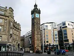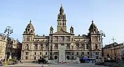 The burgh was substantially enlarged in 1891 to take in areas from both Lanarkshire and Renfrewshire where the urban area had grown beyond the old burgh boundary.[83] In 1893, the burgh became its own county for lieutenancy and judicial purposes too, being made a county of itself.[84] From 1975 to 1996 the city was part of Strathclyde Region, with the city's council becoming a lower-tier district council. Strathclyde was abolished in 1996, since when the city has again been responsible for all aspects of local government, being one of the 32 council areas in Scotland.[85]