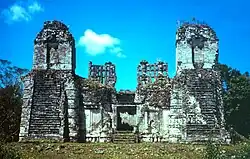Tikal's great rival was Calakmul, another powerful city in the Petén Basin.[50] Tikal and Calakmul both developed extensive systems of allies and vassals; lesser cities that entered one of these networks gained prestige from their association with the top-tier city, and maintained peaceful relations with members of the network.[51] Tikal and Calakmul engaged in the manoeuvering of their alliance networks against each other. At various points during the Classic period, one or other of these powers would gain a strategic victory over its great rival, resulting in respective periods of florescence and decline.[52]