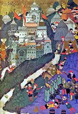 Under Ivan IV (1533–1584), the Tsardom of Russia expanded into the Volga and Caspian regions at the expense of the Tatar khanates. In 1571, the Crimean khan Devlet I Giray, commanded by the Ottomans, invaded Russia and burned Moscow.[82] The next year, the invasion was repeated but repelled at the Battle of Molodi. The Ottoman Empire and its vassal, the Crimean Khanate, continued to invade Eastern Europe in a series of slave raids,[83] and remained a significant power in Eastern Europe until the end of the 17th century.[84] The Crimean cavalry became indispensable for the Ottomans' campaigns against Russia, Poland, Hungary, and Persia.[85]