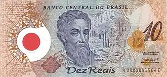 ![]() Detail of an early 20th-century painting by Aurélio de Figueiredo depicting a 32- to 33-year old Cabral. No contemporary portraits of Cabral are known to exist.[1] | |