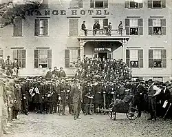 The Civil War had immense social implications for the United States. Emancipation had altered the legal status of 3.5 million persons, threatened the end of the plantation economy of the South, and provoked questions regarding the legal and social inequality of the races in the United States. The end of the war was accompanied by a large migration of newly freed people to the cities,[21] where they were relegated to the lowest paying jobs, such as unskilled and service labor. Men worked as rail workers, rolling and lumber mills workers, and hotel workers. Black women were largely confined to domestic work employed as cooks, maids, and child nurses, or in hotels and laundries. The large population of slave artisans during the prewar period did not translate into a large number of free artisans during Reconstruction.[22] The dislocations had a severe negative impact on the Black population, with a large amount of sickness and death.[23]