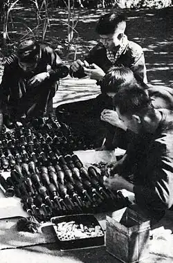 In 1940, Japan invaded French Indochina, following France's capitulation to Germany. By 1941, Japan had gained full military access across Indochina and established a dual colonial rule that preserved Vichy French administration while facilitating Japanese military operations.[76] Cung, now known as Ho Chi Minh, returned to establish the anti-Japanese Viet Minh movement.[70] From 1944, the US Office of Strategic Services (O.S.S.) provided the Viet Minh with weapons and training to fight the occupying Japanese.[77][78] US President Franklin D. Roosevelt supported Vietnamese resistance, and proposed Vietnam's independence be granted under an international trusteeship after the war.[79] The Viet Minh secured their advantage by relocating their operations from southern China into Vietnam and leveraging Allied support.[80]