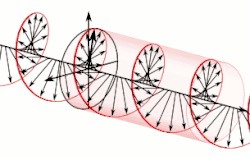 While optical activity occurs in structures that are chiral in three dimensions (such as helices), the concept of chirality can also be applied in two dimensions. 2D-chiral patterns, such as flat spirals, cannot be superposed with their mirror image by translation or rotation in two-dimensional space (a plane). 2D chirality is associated with directionally asymmetric transmission (reflection and absorption) of circularly polarized waves. 2D-chiral materials, which are also anisotropic and lossy exhibit different total transmission (reflection and absorption) levels for the same circularly polarized wave incident on their front and back. The asymmetric transmission phenomenon arises from different, e.g. left-to-right, circular polarization conversion efficiencies for opposite propagation directions of the incident wave and therefore the effect is referred to as circular conversion dichroism. Like the twist of a 2d-chiral pattern appears reversed for opposite directions of observation, 2d-chiral materials have interchanged properties for left-handed and right-handed circularly polarized waves that are incident on their front and back. In particular left-handed and right-handed circularly polarized waves experience opposite directional transmission (reflection and absorption) asymmetries.[8][9]