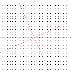 A 2 × 2 real and symmetric matrix representing a stretching and shearing of the plane. The eigenvectors of the matrix (red lines) are the two special directions such that every point on them will just slide on them.