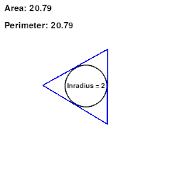 A tangential polygon is a polygon in which the sides are all tangent to a common circle. Since a circle can be defined by any three non-colinear points, all triangles are necessarily tangential. Indeed, every tangential polygon may be triangulated by drawing edges from the circle's center to the polygon's vertices, forming a collection of triangles that all have height equal to the circle's radius; it follows from this decomposition that the total area of a tangential polygon equals half the perimeter times the radius. Thus, a tangential polygon is equable if and only if its inradius is exactly two.[1][2]
