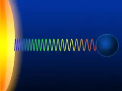 Schematic representation of the gravitational redshift of a light wave escaping from the surface of a massive body
