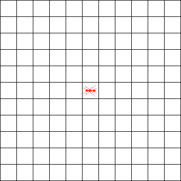 - At a black square, turn 90° counter-clockwise, flip the color of the square, move forward one unit