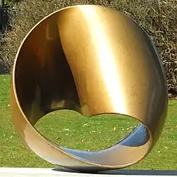 Two-dimensional artworks featuring the Möbius strip include an untitled 1947 painting by Corrado Cagli (memorialized in a poem by Charles Olson),[93][94] and two prints by M. C. Escher: Möbius Band I (1961), depicting three folded flatfish biting each others' tails; and Möbius Band II (1963), depicting ants crawling around a lemniscate-shaped Möbius strip.[95][96] It is also a popular subject of mathematical sculpture, including works by Max Bill (Endless Ribbon, 1953), José de Rivera (Infinity, 1967), and Sebastián.[93] A trefoil-knotted Möbius strip was used in John Robinson's Immortality (1982).[97] Charles O. Perry's Continuum (1976) is one of several pieces by Perry exploring variations of the Möbius strip.[98]