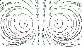 Two points z1 and z2 are conjugate with respect to a generalized circle C, if, given a generalized circle D passing through z1 and z2 and cutting C in two points a and b, (z1, z2; a, b) are in harmonic cross-ratio (i.e. their cross ratio is −1). This property does not depend on the choice of the circle D. This property is also sometimes referred to as being symmetric with respect to a line or circle.[3][4]