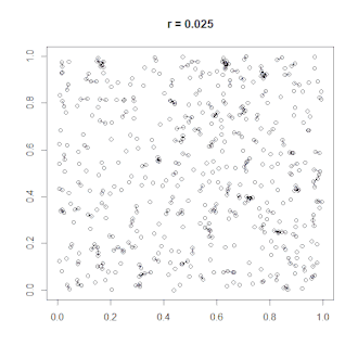 A random geometric graph (RGG) is an undirected geometric graph with nodes randomly sampled from the uniform distribution of the underlying space [0,1)d.[5] Two vertices p, q ∈ V are connected if, and only if, their distance is less than a previously specified parameter r ∈ (0,1), excluding any loops. Thus, the parameters r and n fully characterize a RGG.