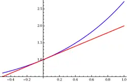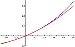 In calculus, Taylor's theorem gives an approximation of a -times differentiable function around a given point by a polynomial of degree , called the -th-order Taylor polynomial. For a smooth function, the Taylor polynomial is the truncation at the order of the Taylor series of the function. The first-order Taylor polynomial is the linear approximation of the function, and the second-order Taylor polynomial is often referred to as the quadratic approximation.[1] There are several versions of Taylor's theorem, some giving explicit estimates of the approximation error of the function by its Taylor polynomial.