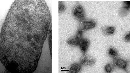 18. ^ Shively JM, Ball F, Brown DH, Saunders RE (November 1973). "Functional organelles in prokaryotes: polyhedral inclusions (carboxysomes) of Thiobacillus neapolitanus". Science. 182 (4112): 584–586. Bibcode:1973Sci...182..584S. doi:10.1126/science.182.4112.584. PMID 4355679. S2CID 10097616.