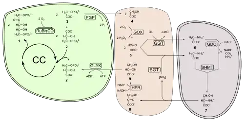 The efficiency of both light and dark reactions can be measured, but the relationship between the two can be complex. For example, the light reaction creates ATP and NADPH energy molecules, which C3 plants can use for carbon fixation or photorespiration.[47] Electrons may also flow to other electron sinks.[48][49][50] For this reason, it is not uncommon for authors to differentiate between work done under non-photorespiratory conditions and under photorespiratory conditions.[51][52][53]