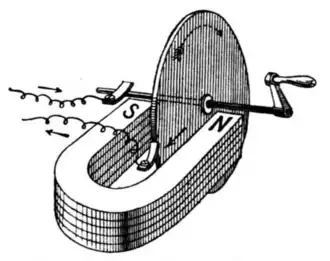 Arago's rotations is an observable magnetic phenomenon that involves the interactions between a magnetized needle and a moving metal disk. The effect was discovered by François Arago in 1824. At the time of their discovery, Arago's rotations were surprising effects that were difficult to explain. In 1831, Michael Faraday introduced the theory of electromagnetic induction, which explained how the effects happen in detail.