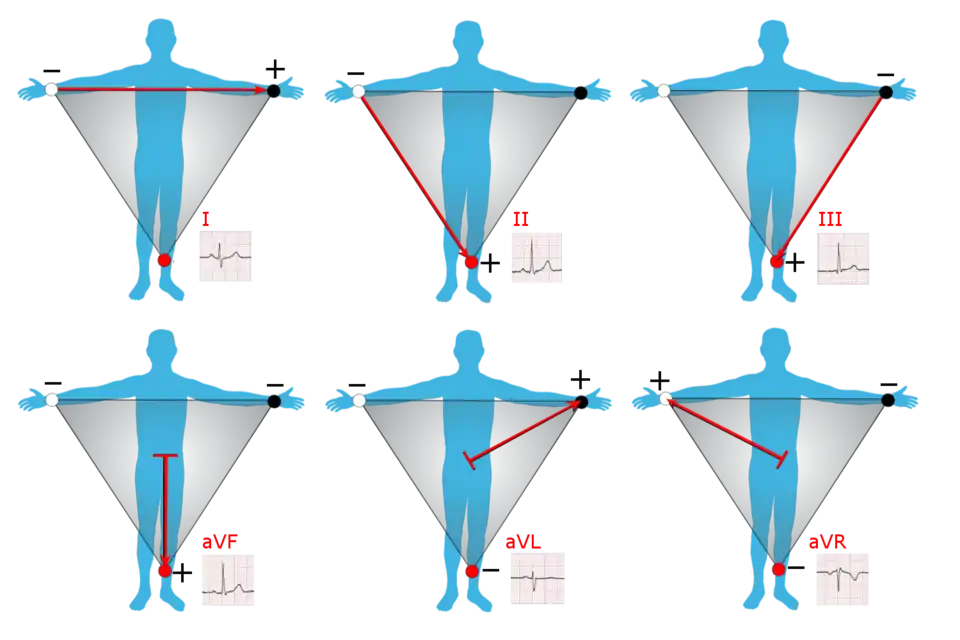 Commonly, 10 electrodes attached to the body are used to form 12 ECG leads, with each lead measuring a specific electrical potential difference.[34]