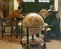 According to popular legend, after recanting his theory that the Earth moved around the Sun, Galileo allegedly muttered the rebellious phrase "And yet it moves". There was a claim that a 1640s painting by the Spanish painter Bartolomé Esteban Murillo or an artist of his school, in which the words were hidden until restoration work in 1911, depicts an imprisoned Galileo apparently gazing at the words "E pur si muove" written on the wall of his dungeon. The earliest known written account of the legend dates to a century after his death. Based on the painting, Stillman Drake wrote "there is no doubt now that the famous words were already attributed to Galileo before his death".[165] However, an intensive investigation by astrophysicist Mario Livio has revealed that said painting is most probably a copy of an 1837 painting by the Flemish painter Roman-Eugene Van Maldeghem.[166]