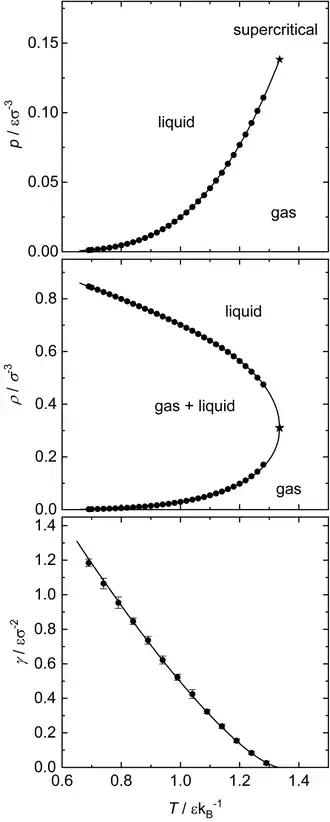 - ^ Vrabec, Jadran; Kedia, Gaurav Kumar; Fuchs, Guido; Hasse, Hans (2006-05-10). "Comprehensive study of the vapour–liquid coexistence of the truncated and shifted Lennard–Jones fluid including planar and spherical interface properties". Molecular Physics. 104 (9): 1509–1527. Bibcode:2006MolPh.104.1509V. doi:10.1080/00268970600556774. ISSN 0026-8976. S2CID 96606562.