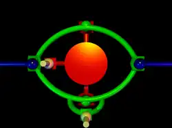 One way of eliminating this translation along the axis is to set the first ball on a fine-thread screw as well. By appropriate adjustment of all three screws, the mirror can be tilted in either direction without translation. The screws can be driven by a motor under computer control to make this seem to the operator like simple rotation about a virtual pivot point in the center of the mirror surface. The translation can instead be eliminated mechanically by using a gimbal mount, which uses two rings that each pivot about a line running through the center of the mirror. This gives kinematically correct two-axis rotation about the center of the mirror.