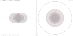 A rotating black hole has many photon "spheres", more precisely oblates (spheroids more or less flattened at the poles, depending on photon approach direction). As a black hole rotates, it drags space with it. In a polar orbit, there is only one photon sphere. This is because when approaching from a direction parallel to the rotation axis, the possibility of traveling with or against the rotation does not exist. The rotation will instead cause the orbit to precess[6]. The other photon spheres that are closer to the black hole than the polar orbit sphere have the same spin as the black hole, and those farther away have the opposite spin. The greater the angular velocity of the rotation of a black hole, the greater the distance between the nearest and farthest photon spheres. If the photons are approaching the black hole in the direction of the equator, the photon spheres degenerate into circles in the equatorial plane.