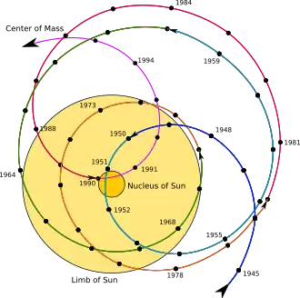 - ^ a b Leong, S. (2002). Period of the Sun's Orbit around the Galaxy (Cosmic Year). The Physics Factbook. Archived from the original on 22 August 2011. Retrieved 10 May 2007.