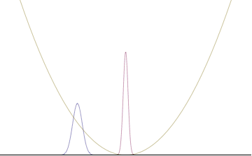 In a quantum harmonic oscillator of characteristic angular frequency ω, place a state that is offset from the bottom of the potential by some displacement x0 as where Ω describes the width of the initial state but need not be the same as ω. Through integration over the propagator, we can solve for the full time-dependent solution. After many cancelations, the probability densities reduce to where we have used the notation to denote a normal distribution of mean μ and variance σ2. Copying the variances above and applying trigonometric identities, we can write the product of the standard deviations as