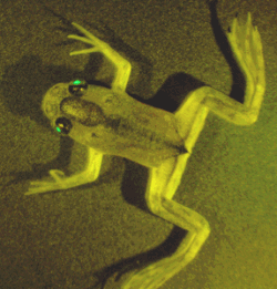 Systems have been developed to create transgenic organisms in a wide variety of other animals. Chickens have been genetically modified for a variety of purposes. This includes studying embryo development,[283] preventing the transmission of bird flu[284] and providing evolutionary insights using reverse engineering to recreate dinosaur-like phenotypes.[285] A GM chicken that produces the drug Kanuma, an enzyme that treats a rare condition, in its egg passed US regulatory approval in 2015.[286] Genetically modified frogs, in particular Xenopus laevis and Xenopus tropicalis, are used in developmental biology research. GM frogs can also be used as pollution sensors, especially for endocrine disrupting chemicals.[287] There are proposals to use genetic engineering to control cane toads in Australia.[288][289]