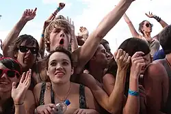 Millennial fans, especially girls and women, have been the key factor behind the commercial success of franchises such as Harry Potter, Twilight, and The Hunger Games. More recently, they came out in large numbers for the movie Barbie (2023) and musician Taylor Swift's Eras Tour.[112] Despite having preschool children as the intended audience, the animated television show Bluey (2018–present) has also captured the imagination of Millennial adults with and without children. For them, Bluey portrays family life in a positive way, fuels nostalgia, and helps them heal emotional wounds from childhood.[117][118]