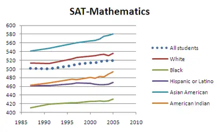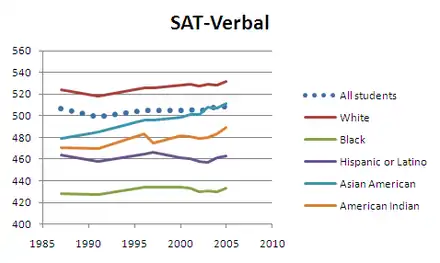 - ^ "Average SAT scores for 12th-grade SAT-taking population, by race/ethnicity: 2006". Institute of Educational Sciences. The College Board, College Bound Seniors, 2006. 2006. Archived from the original on June 27, 2015.