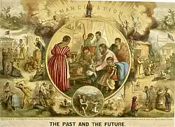 The legal institution of human chattel slavery, comprising the enslavement primarily of Africans and African Americans, was prevalent in the United States of America from its founding in 1776 until 1865, predominantly in the South. Slavery was established throughout European colonization in the Americas. From 1526, during the early colonial period, it was practiced in what became Britain's colonies, including the Thirteen Colonies that formed the United States. Under the law, children were born into slavery, and an enslaved person was treated as property that could be bought, sold, or given away. Slavery lasted in about half of U.S. states until abolition in 1865, and issues concerning slavery seeped into every aspect of national politics, economics, and social custom.[1] In the decades after the end of Reconstruction in 1877, many of slavery's economic and social functions were continued through segregation, sharecropping, and convict leasing. Involuntary servitude as a punishment for crime remains legal.