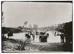 After the Revolutionary War broke out, the British realized they lacked the manpower necessary to prosecute the war. In response, British commanders began issuing proclamations to Patriot-owned slaves, offering freedom if they fled to British lines and assisted the British war effort.[34] Such proclamations were repeatedly issued over the course of the conflict, which resulted in up to 100,000 American slaves fleeing to British lines.[35] Self-emancipated slaves who reached British lines were organized into a variety of military units, which served in all theaters of the war. Formerly enslaved women and children, in lieu of military service, worked instead as laborers and domestic servants. At the end of the war, freed slaves in British lines either evacuated to other British colonies or to Britain itself, were re-enslaved by the victorious Americans, or fled into the countryside.[36]